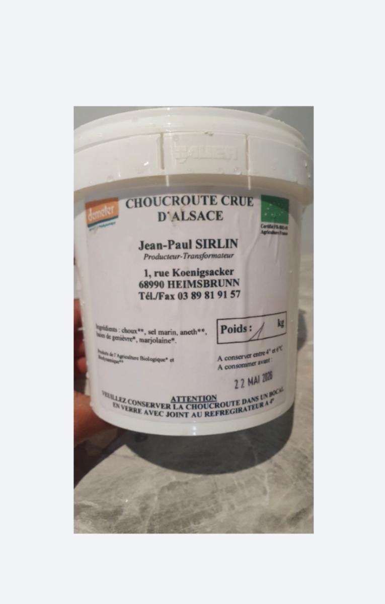 Choucroute crue, à consommer froid ou réchauffer.