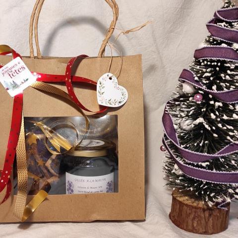 -un paquet de bredelas * 100g au sucre glace à la mauve et au bleuet et pétales de rose (tous les ingrédients sont issus de l'agriculture biologique)