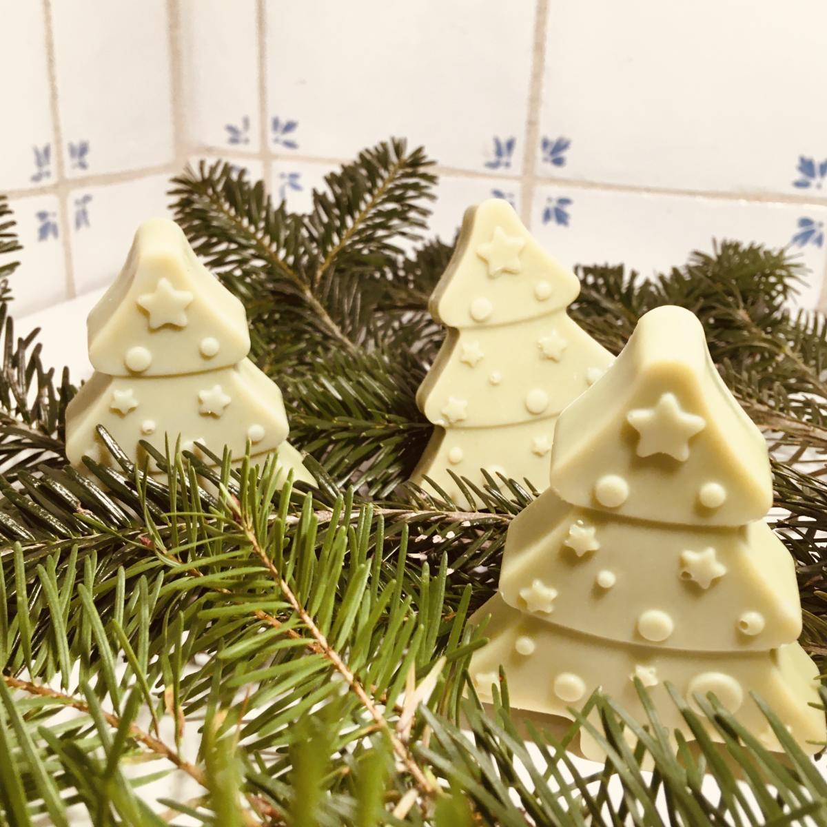 Savon de Noël très doux, à l'huile essentielle de sapin pectiné. Sa couleur vient de la chlorella.