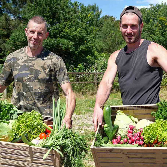 Hervé et Ben pour la préparation de vos paniers bio